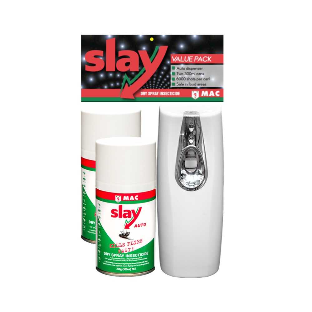 MAC Slay Dry Insecticide Is a powerful commercial strength insecticide spray formulated to kill both flying and crawling insects.